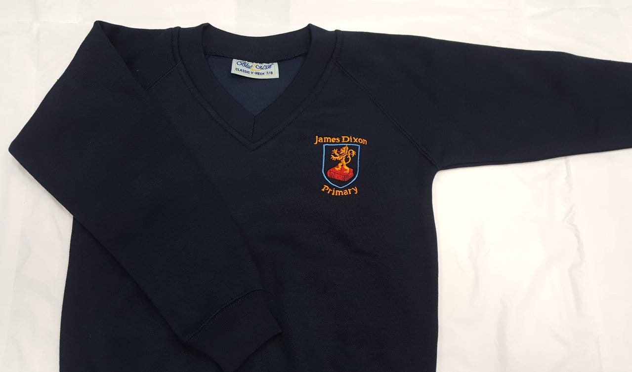 James Dixon school V-neck sweatshirt to wear with shirt and school tie